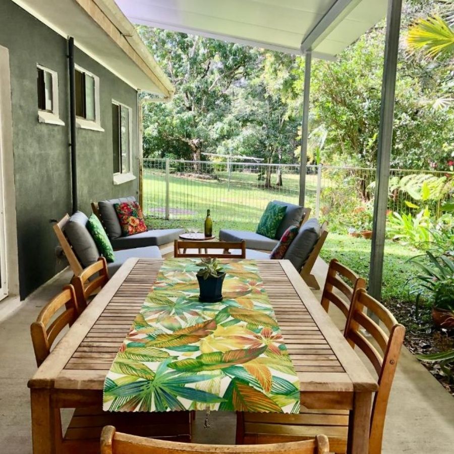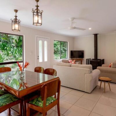 Kuranda Ngorongoro Lodge is unexpected — in the best way. African art on the walls, earthy tones, and a whole house to yourself. There’s a pool, a garden full of butterflies, and just enough quirky detail to make it memorable without being kitsch.