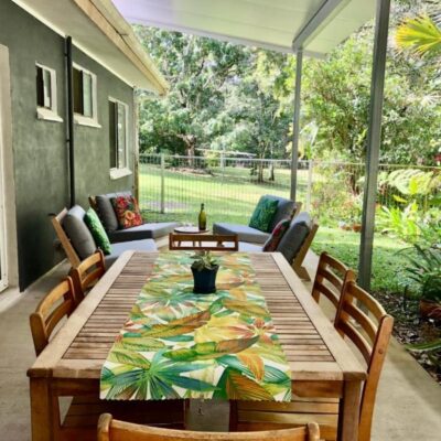 For couples wanting a rainforest hideaway with space to stretch out, Honeybee House is a winner. It’s self-contained, has two queen rooms, and sits on five acres of tropical bliss. Coffee on the veranda here hits different.