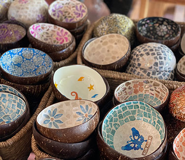 Gift ideas are plentiful in Kuranda where you can find local made gifts by local artists, local designed and produced fashion, bath products scented with essential oils, wines made from local fruit and beautiful Australian jewellery. Look for novelty items and reminders of Kuranda in the shape of the Ulysses butterfly, baskets woven from rainforest vines or plant holders carved from coconuts.